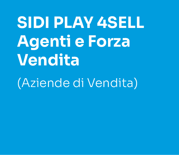 - Gestione della forza vendita interna ed agenti con la nostra soluzione “SIDI PLAY 4SELL” per le commodity energia elettrica, gas e telecomunicazione